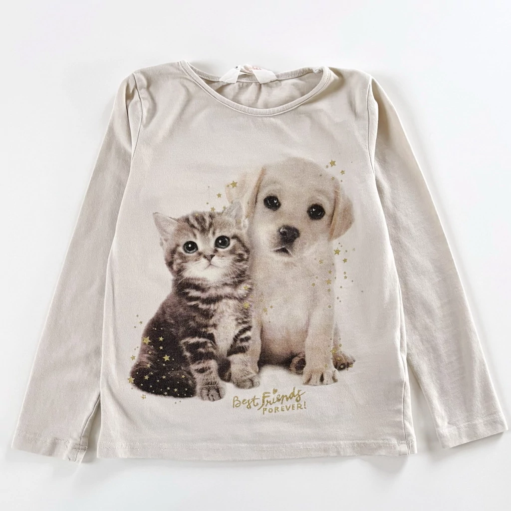 104-es cicás kutyás pamut hosszú ujjú kislány felső – H&M, 2-4 év