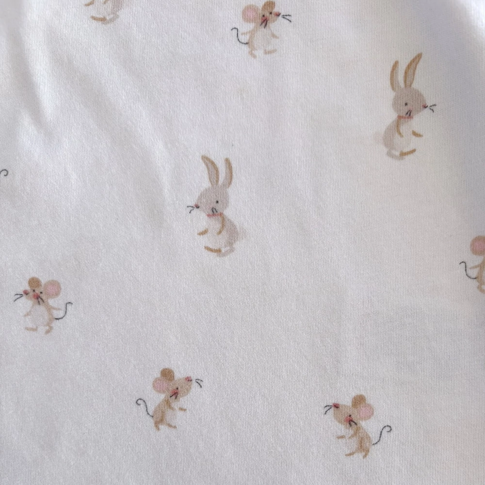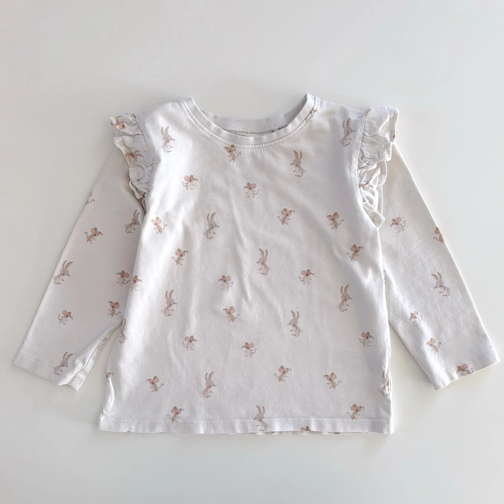 104-es Next pamut halvány drapp egér és nyuszi mintás hosszú ujjú felső kislánynak – 3–4 év