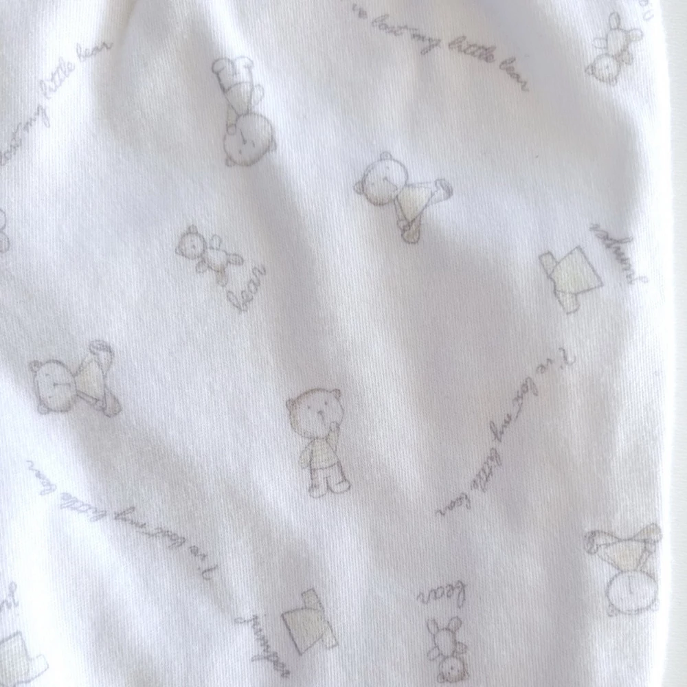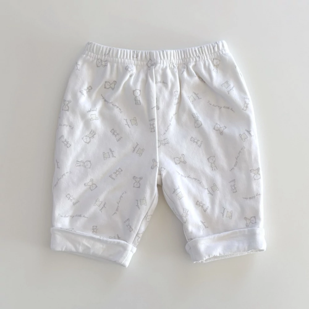 A letisztult fehér alapszín apró állatfigurákkal és finom mintákkal díszítve unisex megjelenést ad, ezért kislányoknak és kisfiúknak egyaránt tökéletes. A természetes pamut anyag miatt ez a nadrág ideális választás a baba első ruhái közé – akár a hazahozós szett egyik mutatós darabjaként is.