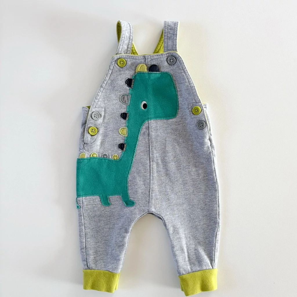 Ez a vidám, dinoszaurusz mintás Next kantáros nadrág igazi különlegesség a kisfiúk ruhatárában. Szürke alapszínét élénk zöld dínó minta dobja fel, amely játékos és trendi megjelenést kölcsönöz. Pamut anyaga kellemes viseletet biztosít, a kantáros fazon pedig praktikus, így jól illeszkedik a baba mozgásához.