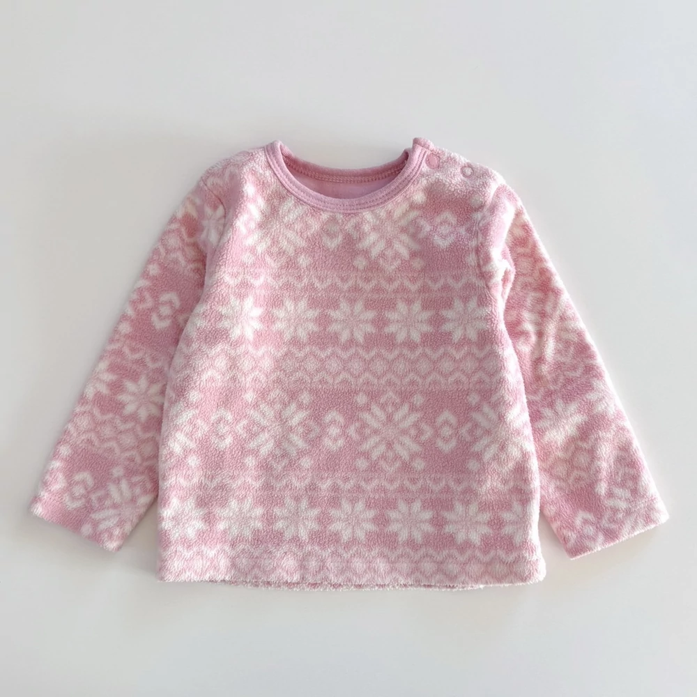 74-es rózsaszín hópelyhes polár pulóver kislánynak – TU, 6–9 hónap