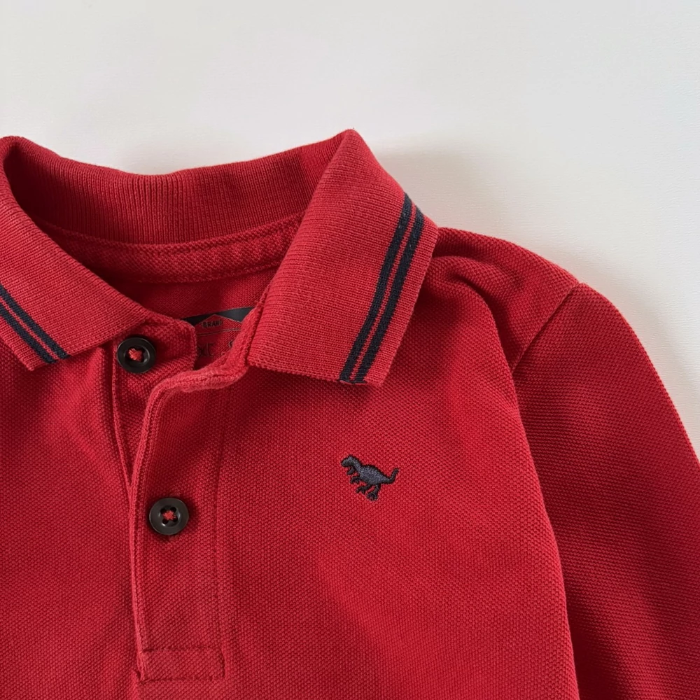 80-as Next piros galléros hosszú ujjú pamut kisfiú felső – 9-12 hó