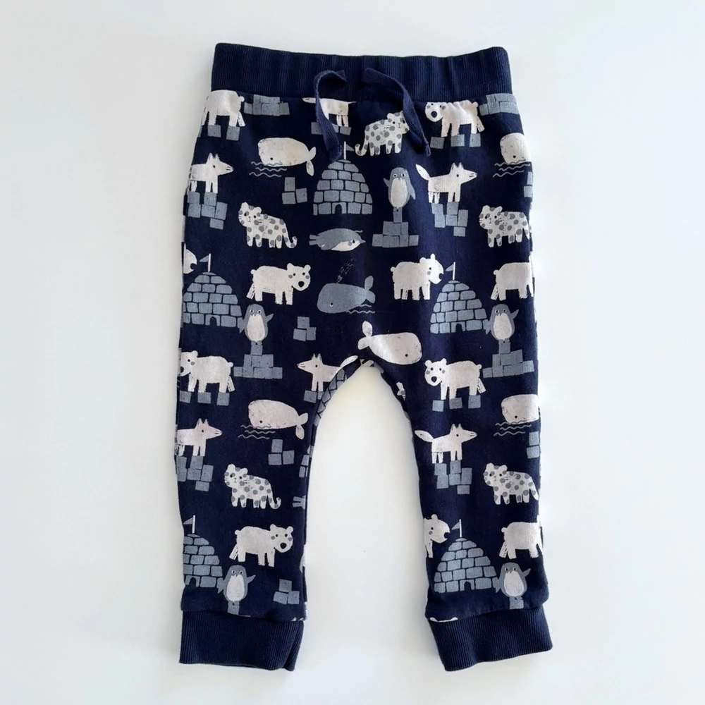 86-os sötétkék állatos jogger melegítőnadrág kisfiúnak – George, 12–18 hónap